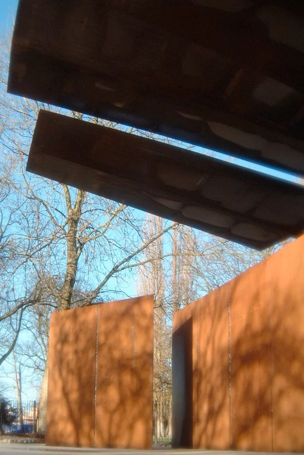The existing concrete stage has been re-used and a ‘back of house’ changing room and store has been formed with gabion stone baskets which will become overgrown over time. Cor-ten steel screens and four overhanging canopies create a permanent stage set. As the performance season is quite short the structure has an abstract, enigmatic quality when viewed across the park having sculptural and visual interest all year around.