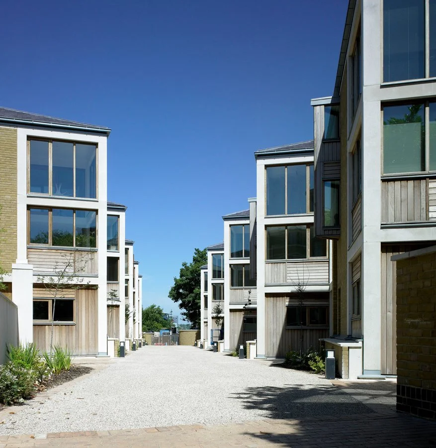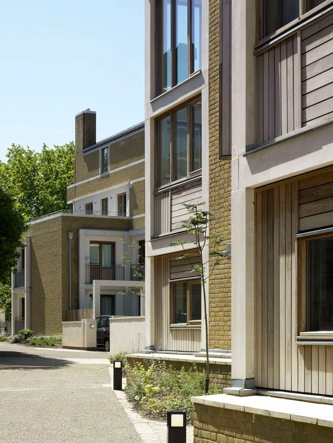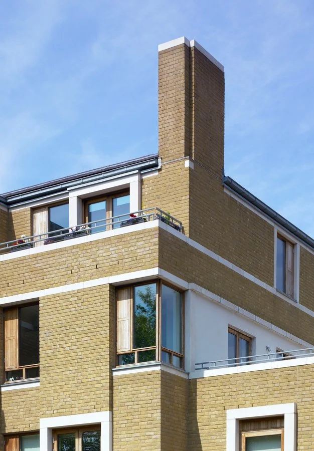 Situated within the Highbury Fields Conservation Area this contemporary new build project created 24 flats and 10 houses. A new block overlooking Highbury Fields is of the scale and massing to reflect the rhythm of it’s neighbouring Victorian Villas. Behind this block is a pair of smaller blocks and in the depth of the site a mews of ten detached houses. All of the buildings are articulated in a language of stock brickwork, Iroko timber and cast stone elements. The site layout is governed by railway tunnels which run below the site which presented technical challenges overcome through the use of a complex basement construction, spring supported superstructure and carefully detailed acoustic isolation to create peaceful interior spaces.
